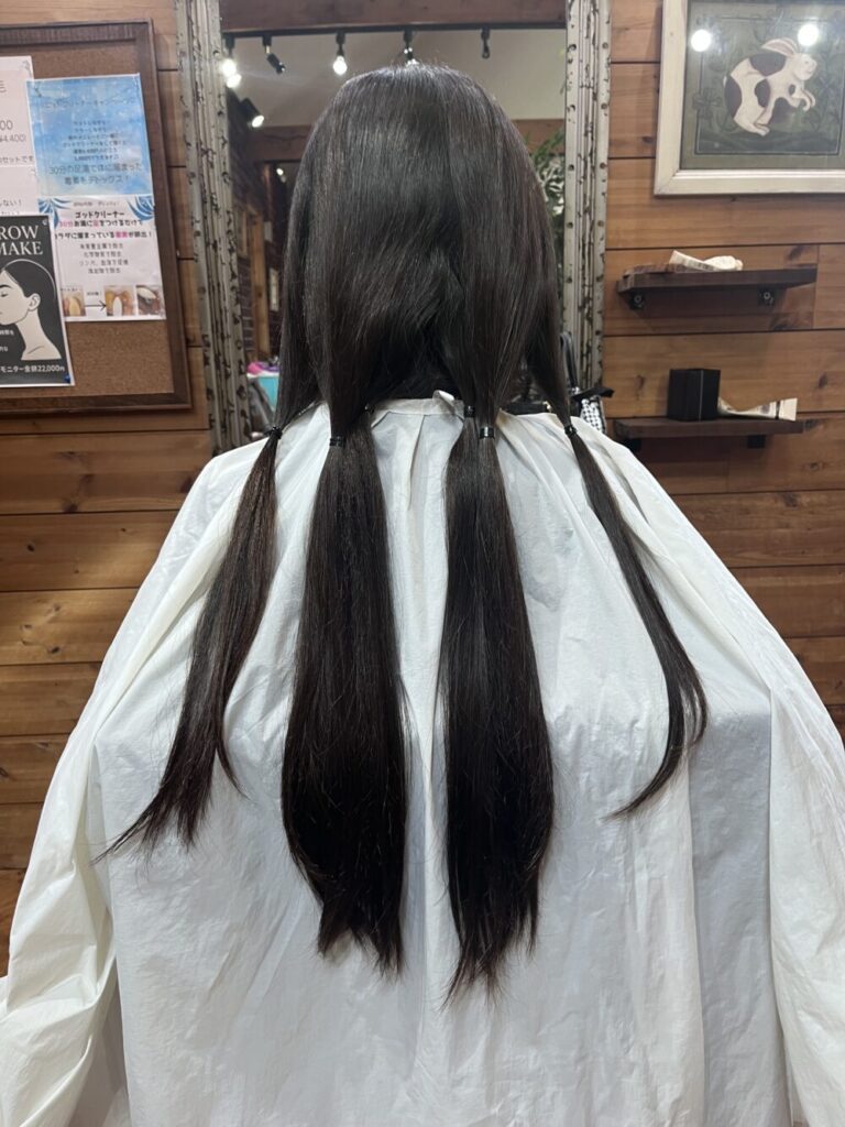 ヘアドネーションするので、髪の毛持って帰ります!、、、と✨